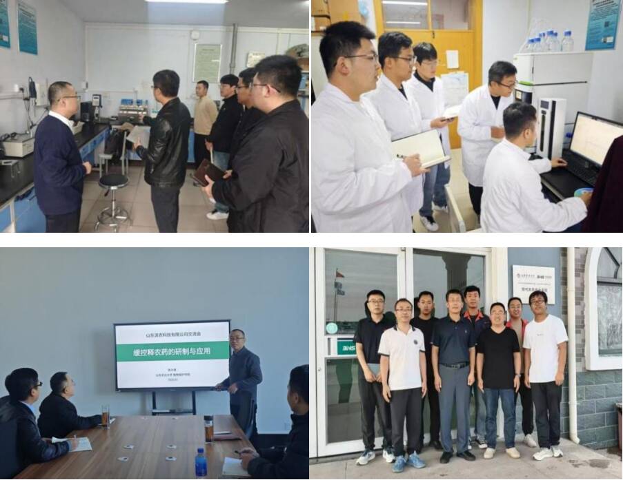 2024年初,滨农科技基于外贸除草剂订单对微囊缓释产品需求不断增加,决定立项与山东农业大学合作共同开发适应国外市场的制剂产品。依托植物保护学院团队在缓控释农药领域的研究积累,团队成员张大侠副教授带领研究生开展技术攻关,并前往滨农科技对公司技术人员进行小试技术和产品质控交底培训。为进一步探讨配方、生产工艺及质量控制的稳定性和规范性,为中试和生产设备选型做准备,滨农科技此次派员到访学院,进一步交流制备过程的技术细节。