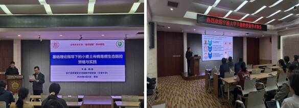 羊健教授聚焦小麦土传病毒病威胁小麦生产安全、影响农产品质量安全等关键问题,介绍了“种、拌、诱”绿色生态防控技术体系,大幅降低化学投入品残留风险,从生产环节保障小麦质量安全。其一,以“从源头到终端”的全程质量管控为核心,系统开展流行监测、多维互作机制、抗病育种与生态防控技术研究。其二,明确病毒基因功能与致病分子机理,解析病毒–介体-寄主–土壤微生物群落多维互作网络,揭示表观遗传修饰、ROS、m6A修饰等介导的小麦抗病机制。其三,集成“种、拌、诱”绿色生态防控技术体系,大幅降低化学投入品残留风险,从生产环节保障小麦质量安全。在学术交流互动环节,现场师生围绕真菌传毒机制及病毒病害绿色防控踊跃提问,羊教授逐一作答,并与大家就相关科学问题展开了深入交流。讨论氛围浓厚,参会师生纷纷表示收获颇丰。