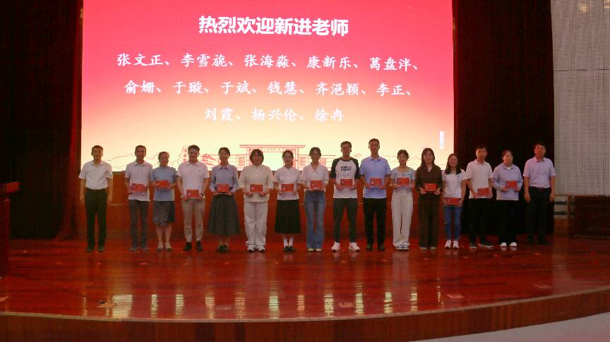 党委书记安宁、院长原雪峰为学院新进的14位老师颁发师德师风牌。新进教师们表示,在新学期新征程上将坚守初心、携手共进,争做“四有”好老师,为学院的教学事业以及人才培养展现新担当、新作为。