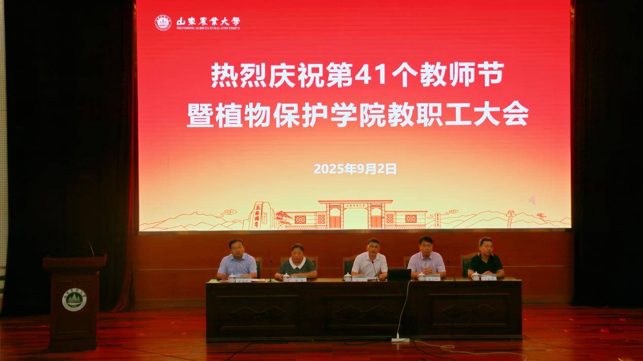 9月2日下午,植保学院在岱宗校区文理大楼学术报告厅召开“热烈庆祝第41个教师节暨植物保护学院教职工大会”,会议由植保学院党委书记安宁主持,植保学院全体教职工及部分退休教师参加会议。