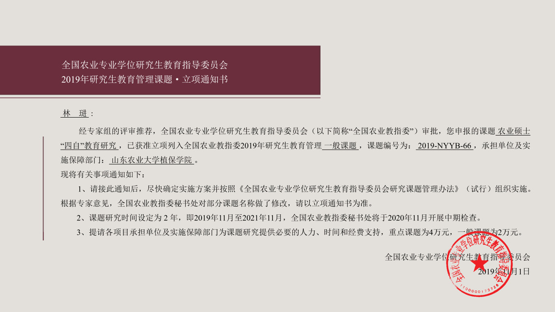 全国农业教指委2019研究生教育管理一般课题