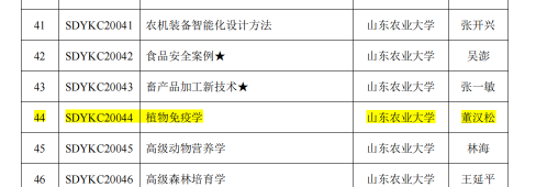 植物免疫学,董汉松,山东省研究生教育优质课程,2020