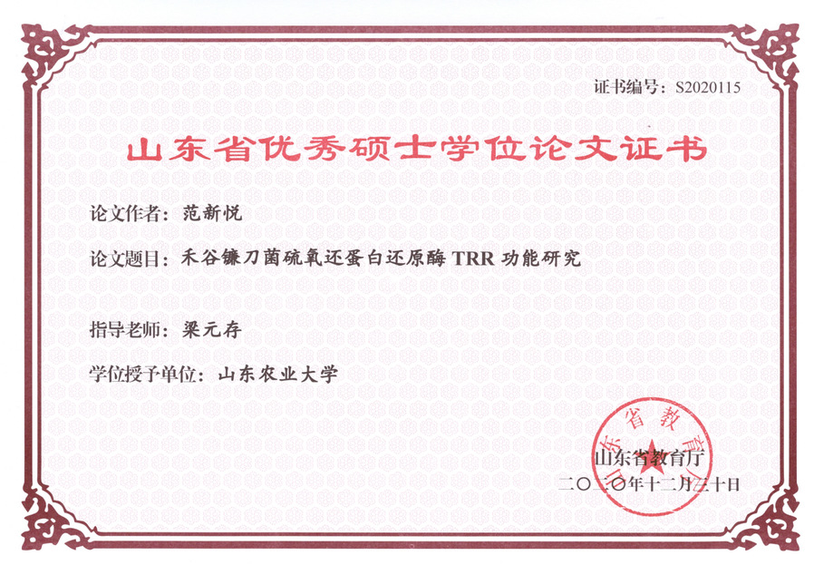 禾谷镰刀菌硫氧还蛋白还原酶TRR功能研究,2020年山东省优秀硕士论文,范新悦,2020年12月
