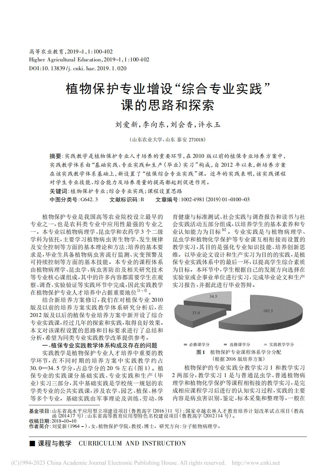 刘爱新,李向东,刘会香,许永玉,植物保护专业增设"综合专业实践"课的思路和探索,高等农业教育,2019,1:100-102.