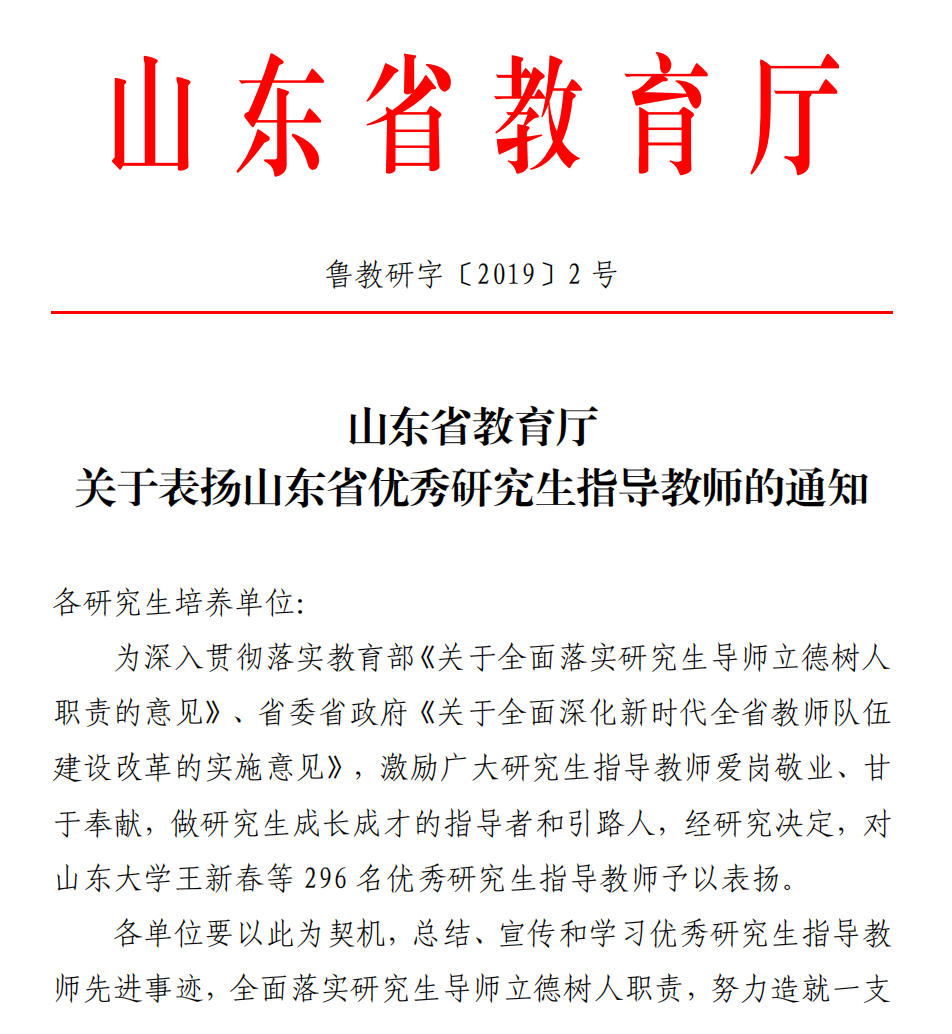 山东省优秀研究生导师,山东省教育厅,李向东,2019年