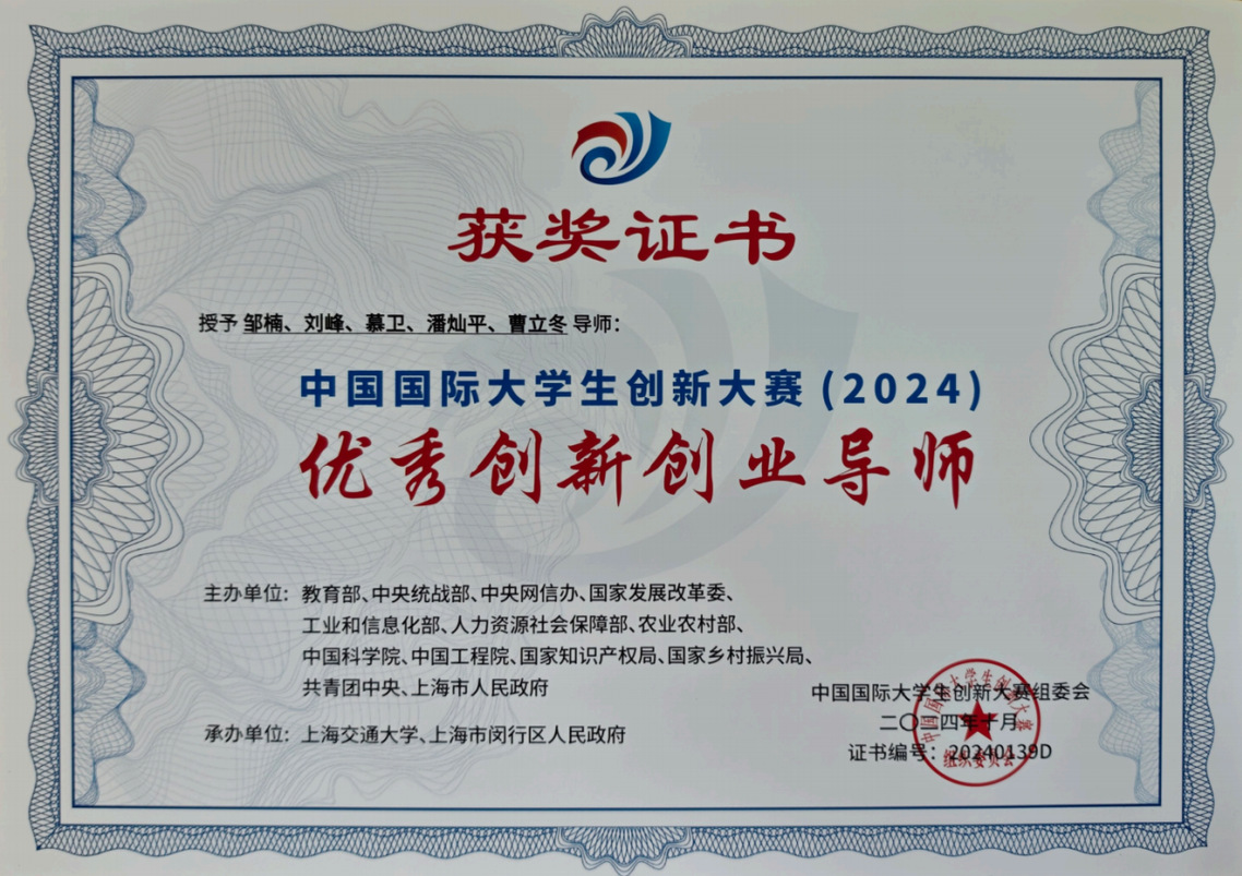 中国国际大学生创新大赛(2024)优秀创新创业导师,教育部,邹楠,2024年
