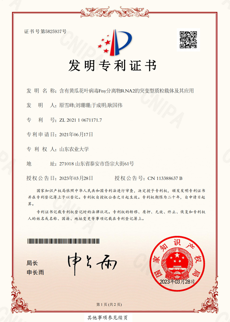 烟草花叶病毒双位点突变弱毒疫苗及其应用,发明专利,ZL20221078...