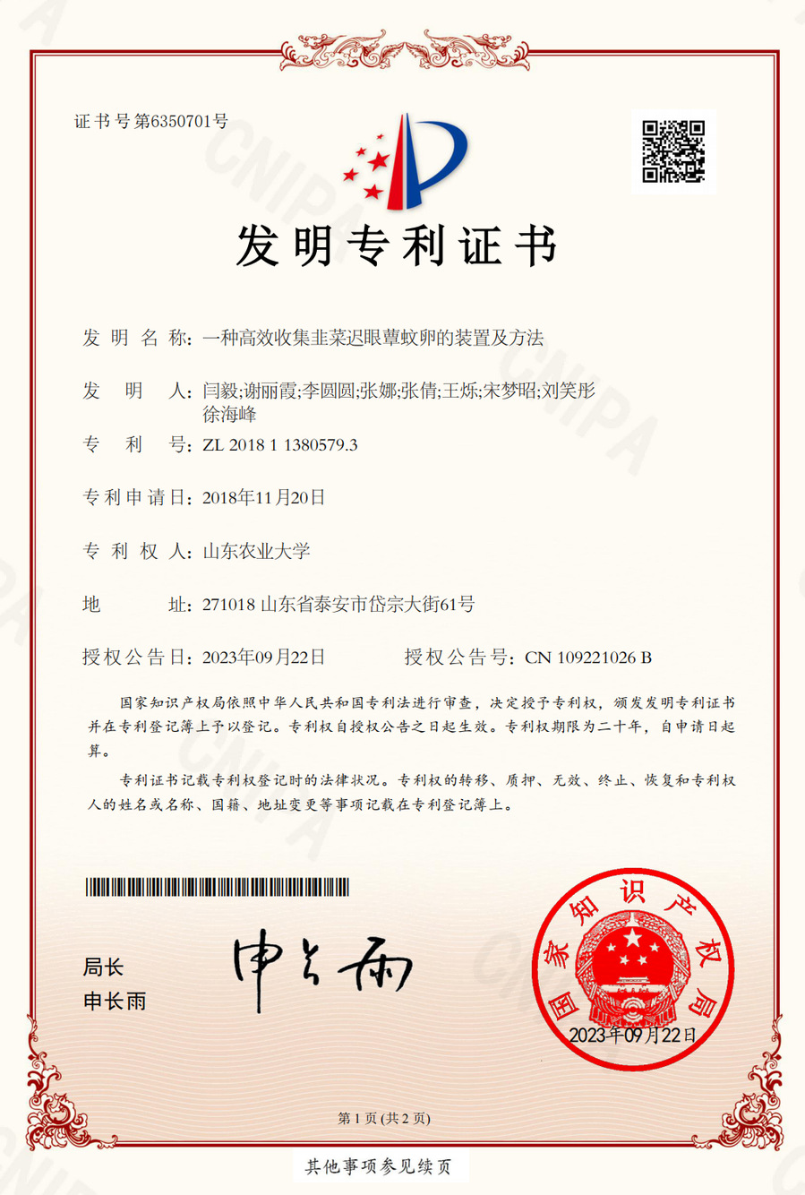 一种高效收集韭菜迟眼蕈蚊卵的装置及方法,发明专利,CN109221026B