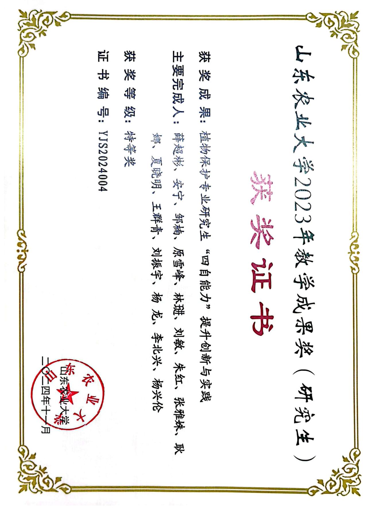 山东农业大学教学成果奖一等奖,山东农业大学,邹楠,2025年