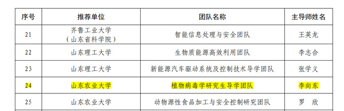 山东省优秀研究生导学团队植物病毒学研究生导学团队,山东省教育厅,李向东,2019年