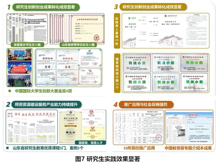师资资源建设服务产业能力持续提升。近年来,入选山东省研究生教育优质课程5门、教学案例库2个;主编教材4部,获评山东省普通高等教育一流研究生教材1部;获山东省优秀研究生导学团队1个、山东省优秀研究生指导教师6人,获农业农村部神农青年英才1人、中国科协青年托举工程1人、泰山学者5人、泰山学者青年专家4人,泰山产业领军人才2人;教师获国家科技进步奖4项、省科技进步奖8项。