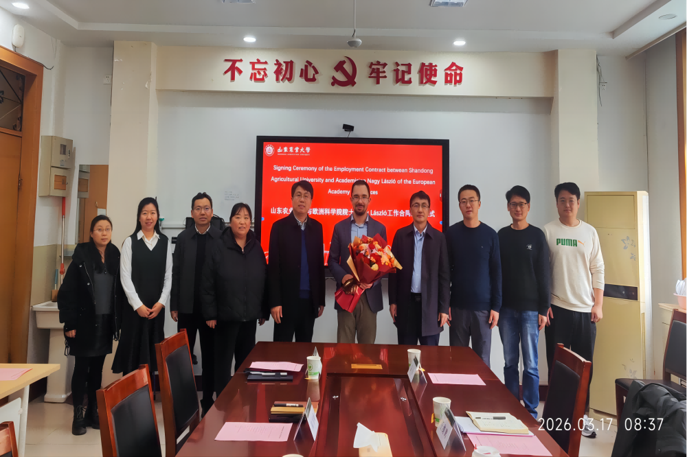 2026年3月17日,植保学院在行远楼楼236会议室隆重举行了匈牙利籍专家纳吉·拉斯洛(Nagy László)院士的聘用合同签订仪式。人事处王继鹏老师,学院安宁书记、原雪峰院长、刘敏副书记、丁新华副院长以及菌物系相关老师共同出席了本次仪式。